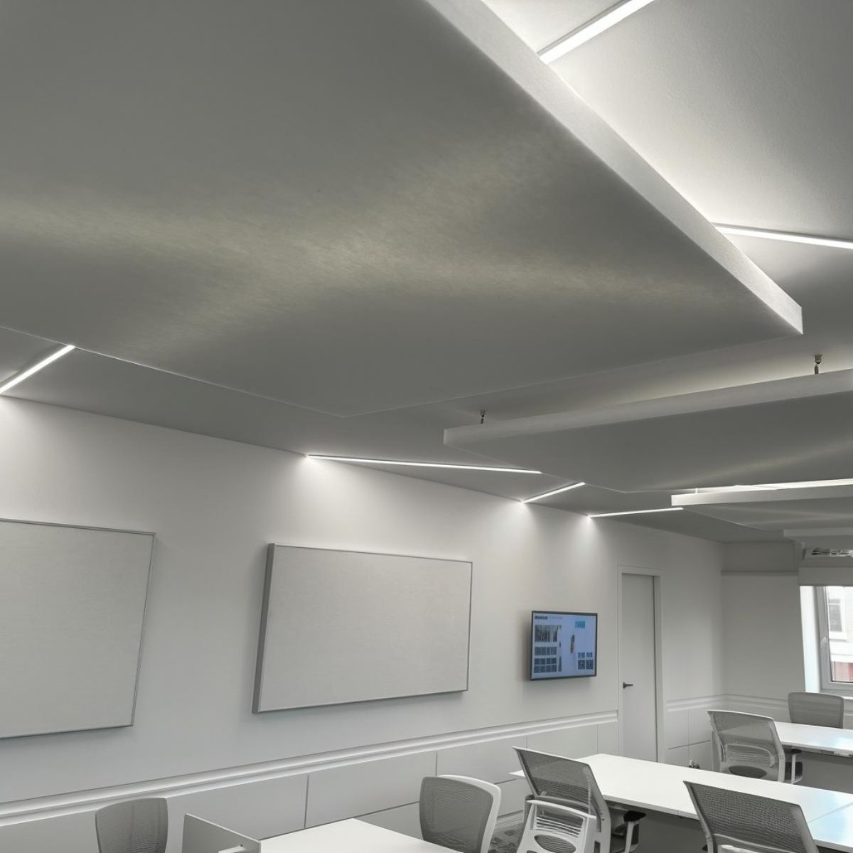 Das Quiet Please Akustik-Deckenpaneel ist in zwei Varianten erhältlich, die jeweils auf spezifische akustische Anforderungen zugeschnitten sind: Bluefiber und QP SilenceCore. Beide Optionen bieten eine hochwertige Schallabsorption und sind in einem eleganten, rahmenlosen Design verfügbar, das sich nahtlos in jede Umgebung einfügt. 1. Bluefiber 2500g/m² Die Bluefiber-Variante ist aus einem besonders dichten PET-Vlies gefertigt und weist eine Dicke von 50 mm sowie ein Gewicht von 2500 g/m² auf. Diese Variante wurde entwickelt, um maximale Schallabsorption im tiefen bis hohen Frequenzbereich zu gewährleisten und eignet sich ideal für akustisch anspruchsvolle Räume. Besonders in Musikstudios, Kinos, großen Konferenzräumen und industriellen Umgebungen sorgt das Bluefiber-Paneel für eine effektive Kontrolle von Bassgeräuschen und eine Reduzierung von Echos. Es bietet eine Absorptionsklasse A und garantiert somit eine hervorragende akustische Leistung. 2. QP SilenceCore 1500g/m² Das QP SilenceCore-Paneel stellt eine leichtere Alternative dar und ist ebenfalls 50 mm dick, jedoch mit einem Gewicht von 1500 g/m². Diese Variante bietet effektive Schallabsorption im mittleren Frequenzbereich und ist speziell für Räume geeignet, in denen Sprachverständlichkeit eine zentrale Rolle spielt, wie Büros, Klassenzimmer, Besprechungsräume und Callcenter. QP SilenceCore erreicht die Absorptionsklasse B und ist eine ausgezeichnete Lösung für Räume mit mittlerer Geräuschbelastung. Flexible Einsatzmöglichkeiten und Designoptionen Beide Varianten des Deckenpaneels sind in den Farben Weiß, Grau und Schwarz erhältlich, was eine Anpassung an verschiedene Raumgestaltungen ermöglicht. Das rahmenlose Design sowie rückseitig montierte Aluprofile erleichtern die Installation mit dem Abhängeset an der Decke. Diese Paneele können sowohl einzeln als auch in Kombination eingesetzt werden, um eine maßgeschneiderte Akustiklösung zu schaffen. Effiziente Schallabsorption und moderne Ästhetik Mit den QP Akustik-Deckenpaneelen erhalten Sie eine leistungsstarke und ästhetische Lösung zur Verbesserung der Raumakustik. Die Bluefiber- und QP SilenceCore-Technologien bieten jeweils spezifische Vorteile, sodass eine optimale Anpassung an unterschiedliche akustische Anforderungen möglich ist. Beide Varianten schaffen eine angenehme Klangumgebung und verleihen dem Raum ein modernes Ambiente. Lieferhinweis: Die Paneele werden als Montagekit geliefert, das vor Ort zusammengebaut wird. Eine detaillierte Montageanleitung ist online verfügbar.
